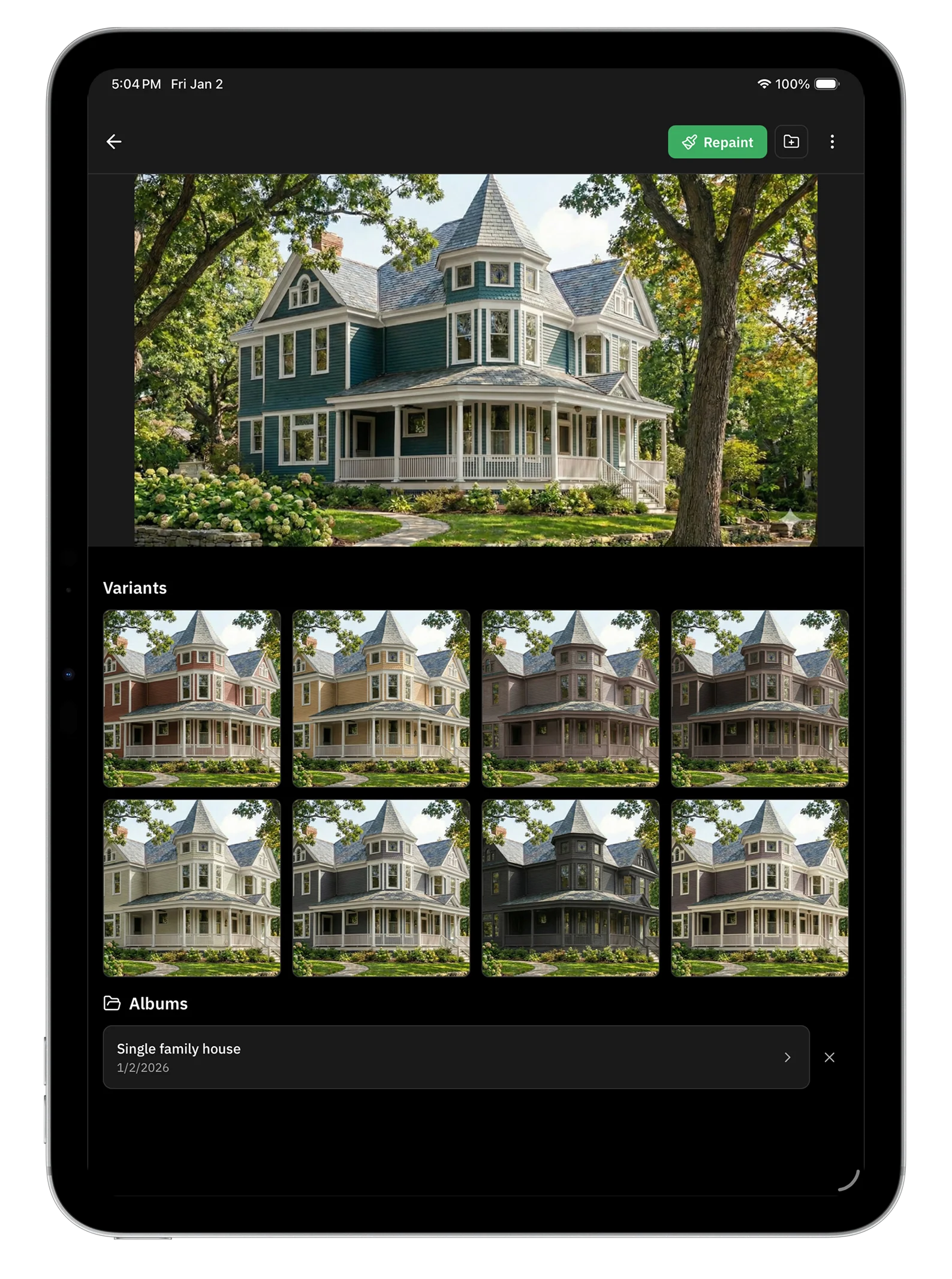 Yes! Repaint by Housepaint AI is available for iPhone, iPad, and Android devices. The mobile app includes all the same features as the web version, so you can visualize paint colors on the go—whether you're at the hardware store or walking around your neighborhood for inspiration.