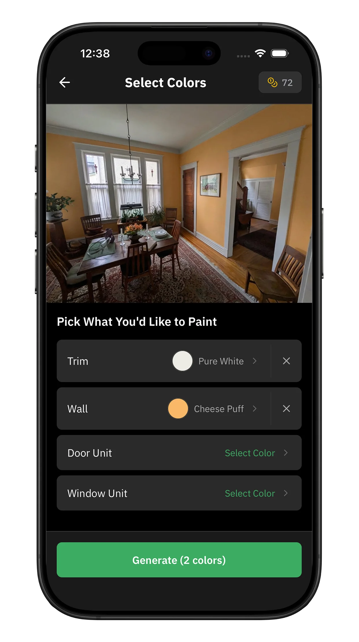 Choose your colors — Browse thousands of real paint colors and see results in seconds