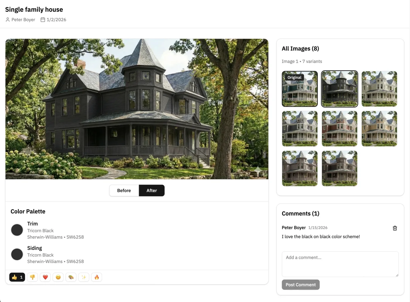 Choosing paint colors is a big decision. With Housepaint AI, you can easily share your color explorations with anyone who needs to weigh in. Perfect for getting a spouse's opinion, consulting with an interior designer, or presenting options to clients. Recipients can view and compare your color choices on any device without creating an account.
