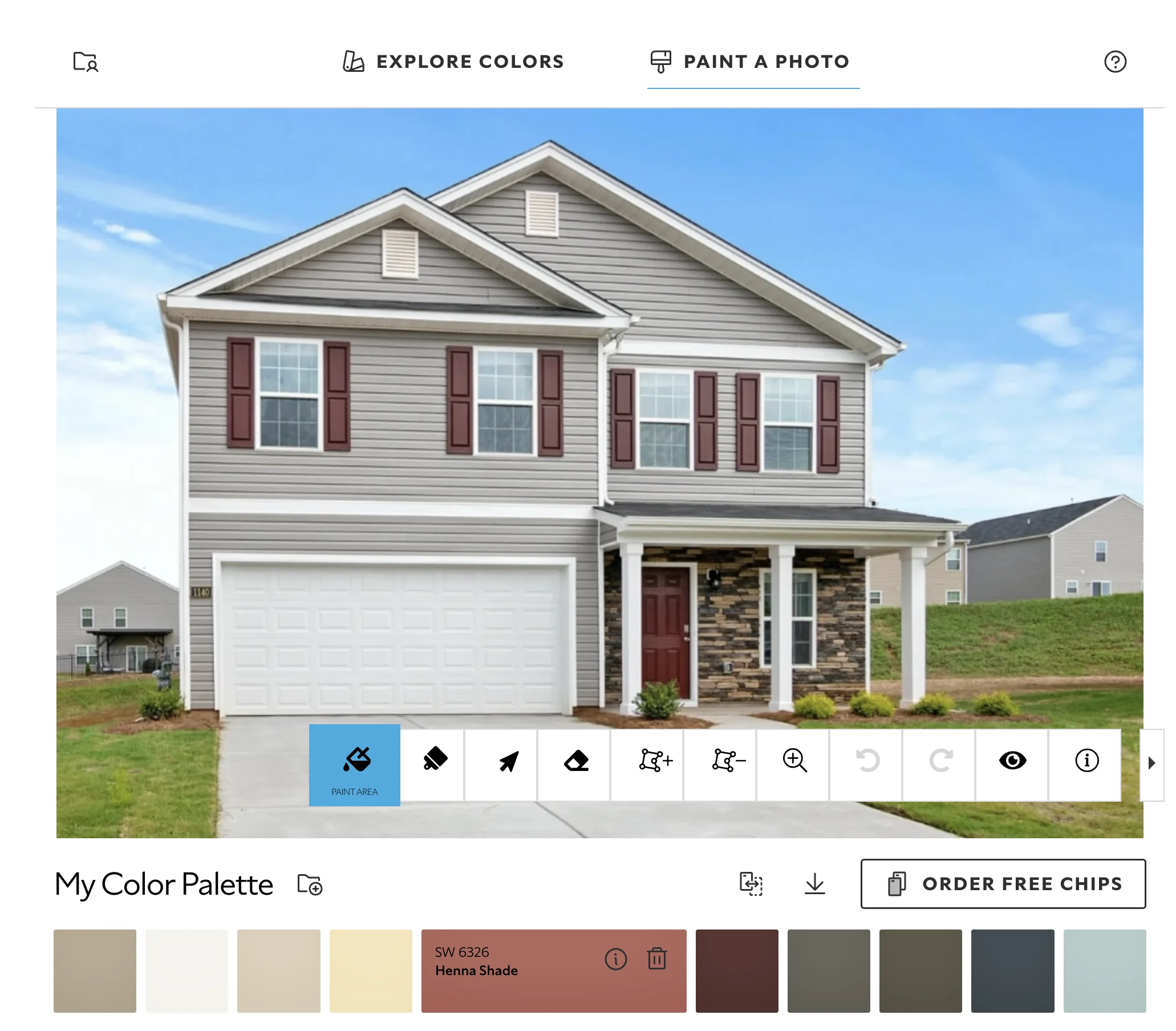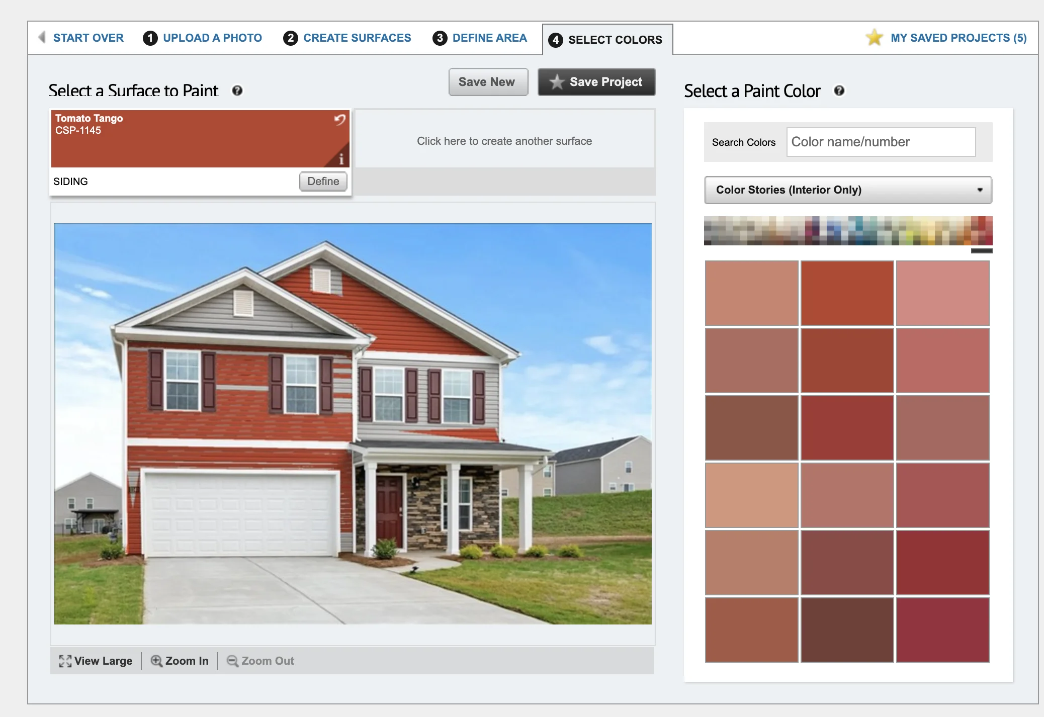 Like the Benjamin Moore, PPG, and Behr visualizers, this visualizer offers manual a manual toolset and has no light simulation technology. It simply overlays the color over the image. Unlike the Benjamin Moore visualizer, this visualizer doesn't support changing colors after applying a mask.
