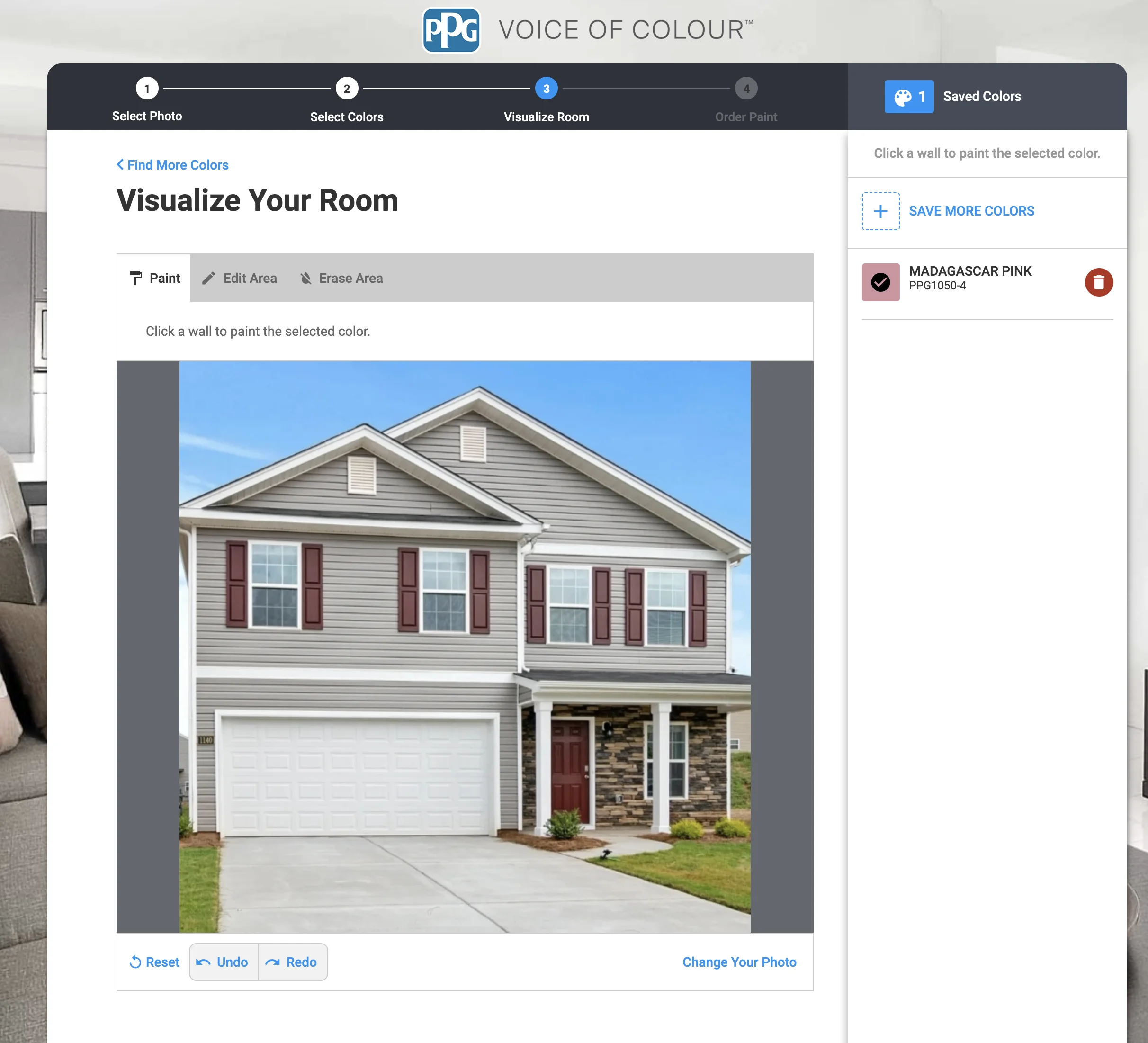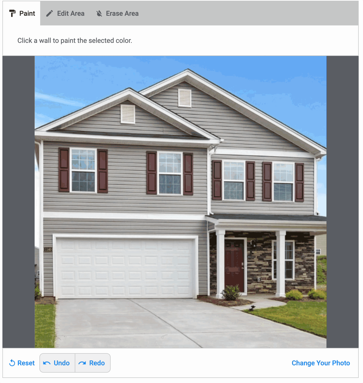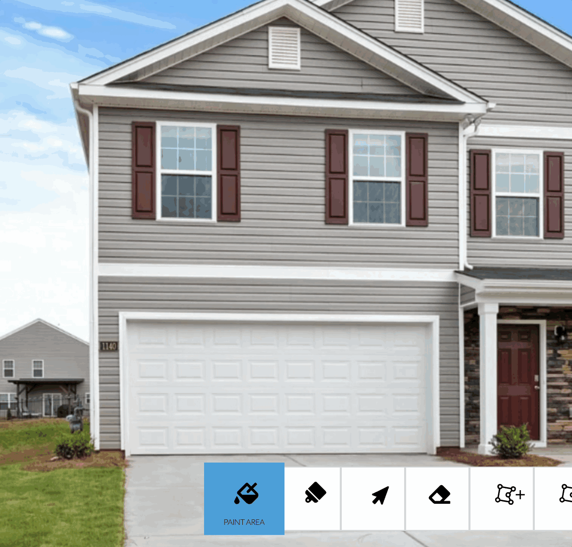 PPG's visualizer allows clicking on areas to paint them, which includes siding. PPG's visualizer appears to use server side compute. It is extremely slow and tedious to use for siding.