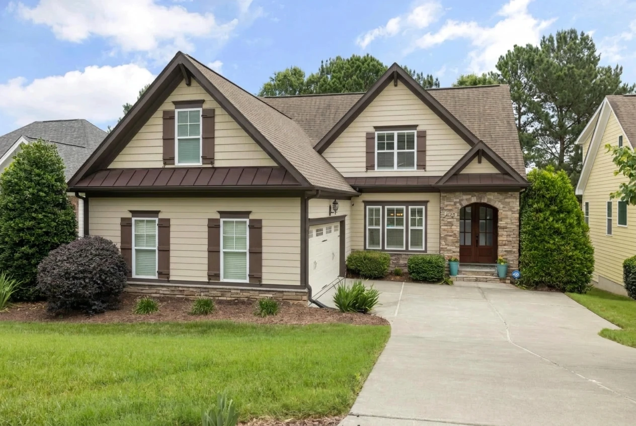 Drag the slider to see before and after. Our AI identifies trim elements and applies realistic paint colors while preserving siding, brick, and other surfaces.